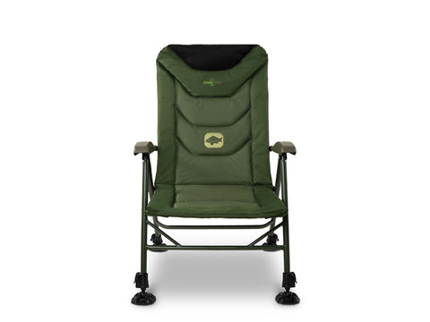 Die ErgoCARP-Serie wurde mit dem Ziel entwickelt, den höchsten Komfort zu einem günstigen Preis zu bieten. Sie zeichnet sich insbesondere durch die Verwendung hochwertiger Materialien und bequemer Matratzen aus, die auf einer stabilen Metallkonstruktion montiert sind, die zu perfekter Stabilität beiträgt. Ein gemeinsames Merkmal der gesamten Serie ist auch die grüne Farbe, ergänzt durch unser originelles Outline-Karpfenlogo.