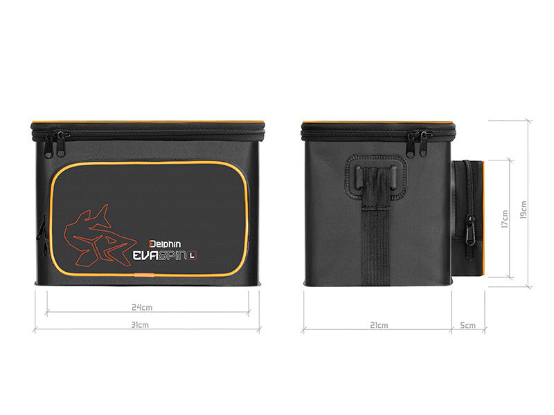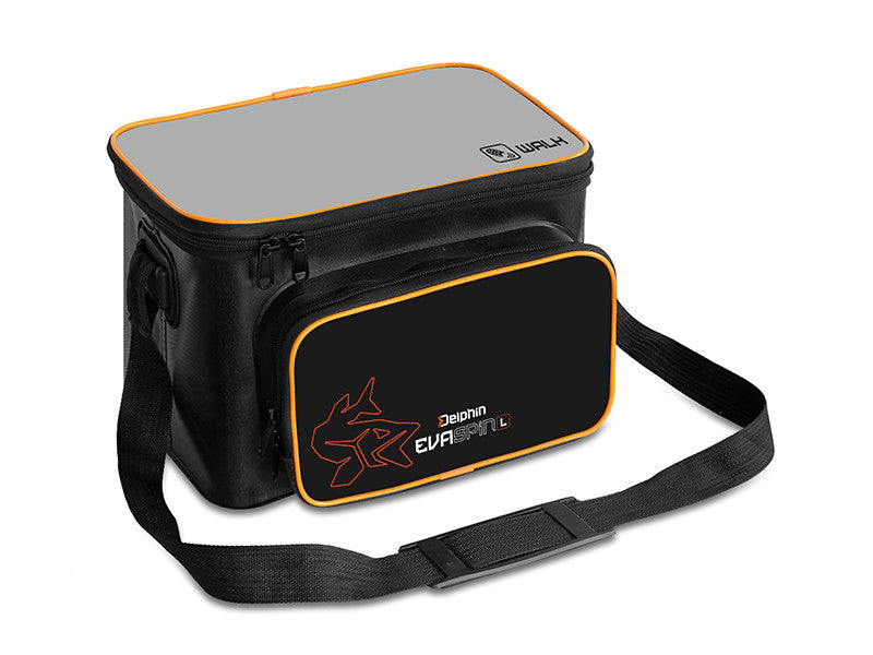 Die EvaSPIN Taschen haben ein modernes Design in einer Kombination aus Schwarz und Grau, das durch die orangefarbenen Elemente wie das Logo mit dem Hecht ergänzt wird. Für einen bequemen und einfachen Transport ist die Tasche mit einem längenverstellbaren Schultergurt ausgestattet.