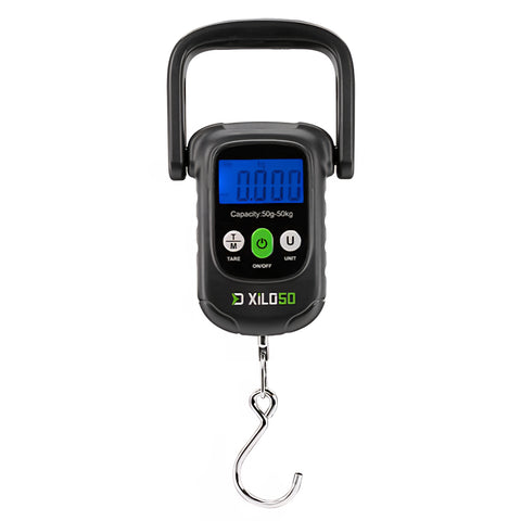 Digitale Waage, die Gewichtsmessungen im Bereich von 50 g bis 50 kg mit hoher Genauigkeit ermöglicht. XILO hat eine einfache Bedienung mit drei Tasten. Einschalten oder Ausschalten der Waage durch Drücken der grünen ON/OFF-Taste. Durch kurzes Drücken der Taste U (UNIT) können Sie die auf dem Display angezeigten Gewichtseinheiten (kg, lbs, JIN, oz) ändern. Mit der TARA-Funktion können Sie z.B. einen Wägesack an den Haken hängen, dann TARA drücken und die Messwerte werden auf Null zurückgesetzt. Das heißt, wenn Sie den Fang anschließend eintüten, wird das Nettogewicht angezeigt.