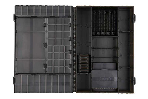 - Die Hauptfächer der Tacklebox wurden so konstruiert, dass alle Edges Einsatzboxen und alle Fox Kleinteile optimal hineinpassen