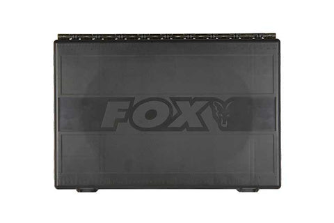 Die neue Fox Tackle Box Serie basiert auf dem legendären Fox F-Box Konzept, reagiert auf Ansätze auf dem aktuellen Markt und setzt eine ganze Reihe eigener Ideen um, um so am Ende wieder dort zu sein, wo sie auch hingehört – an die Spitze im Bereich des Tackleboxdesigns. Indem nun der gesamte Deckel als zusätzlicher Stauraum für Kleinteile genutzt wird, haben wir das Fassungsvermögen erhöht und dennoch die Box so kompakt wie möglich gehalten. Der Deckelbereich bietet 37 einzelne Fächer, ist mit verbesserten Achsgelenken und getönten Verschlussdeckeln ausgestattet, die es ermöglichen, den Inhalt zu sehen. Zusätzlich wird ein ganzes Blatt an Aufklebern mitgeliefert, um den Inhalt eindeutig markieren können, sodass man diesen sehr schnell identifizieren kann.