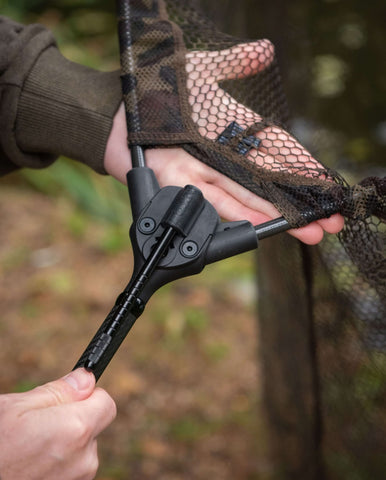 Die ultimative Lösung für ein einfaches Auf- und Abbauen des Keschers. Das zetrale Designelement ist ein einzigartig geformter und mit Fiberglas verstärker Nylon-Spreizblock mit einer abnehmbaren Fixierung.
