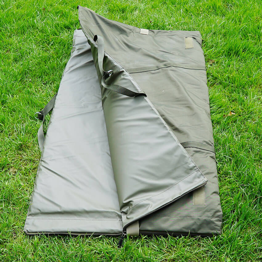 Um die ovale Mattenform zu erreichen, müssen einfach die Reißverschlüsse bis zum Klettverschluss geöffnet und der Klettverschluss an den dafür vorgesehenen Punkten befestigt werden - zack fertig!