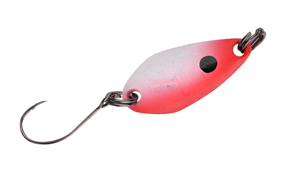 Langsames und extrem attraktives Laufverhalten. Der Spoon kann auch in Verbindung mit einem Naturköder (z.B. einer Bienenmade) gefischt werden. Benutze dabei einen 3- oder 5-fach Tönnchenwirbel!
