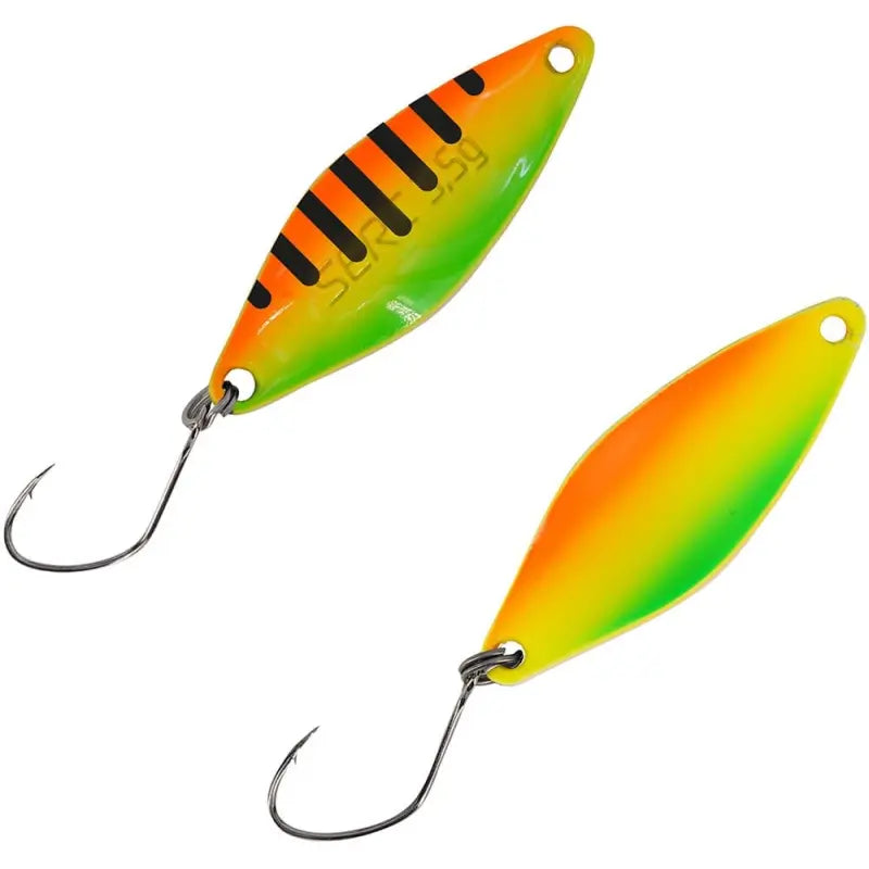 Die optimierte Form des Spoons sorgt dafür, dass er beim Absinken flattert. Die Spoons sind in sehr dynamischen und kontrastreichen Farben erhältlich und mit einem rasiermesserscharfen Einzelhaken ausgestattet.
